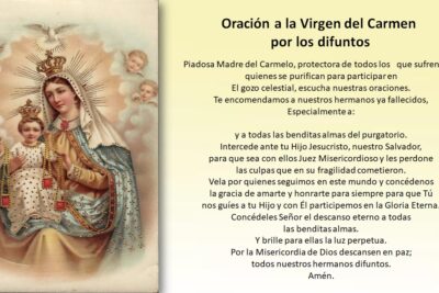 En esta oración, nos unimos para pedirle a la Virgen del Carmen que interceda por las almas del Purgatorio. Esta oración es una forma de recordar a aquellos que han fallecido y que se encuentran en el Purgatorio, esperando la misericordia de Dios. Esta oración es una forma de honrar a aquellos que han partido y de pedir por su liberación. La Virgen del Carmen es una de las advocaciones más veneradas de la Iglesia Católica, y es conocida como la patrona de los marineros, los pescadores y los viajeros. Por esta razón, es una figura ideal para interceder por las almas del Purgatorio. Esta oración es una forma de honrar a aquellos que han partido y de pedir por su liberación.